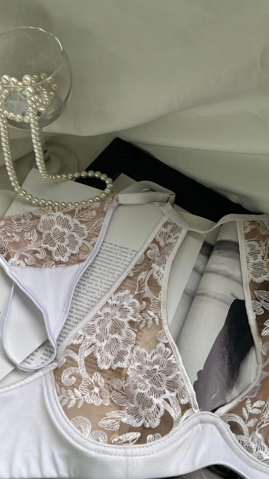 El set Máxima, está diseñado para estilizar tu figura, su corte halter en el bra logra mostrar un estilo diferente de lucir la lencería, no importa si eres de copa pequeña o grande, es ideal para todas las tallas. Con detalles de tull bordado, sesgos de seda italiana, herrajes bañados en oro de 24K y cinta de seda para anudar alrededor del cuello, deja la espalda al descubierto.